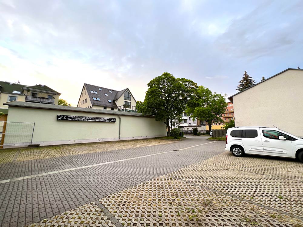 Im Hinterhof des Objekts stehen ausreichend Parkplätze zur Verfügung, sodass Kunden und Mitarbeiter bequem parken können.